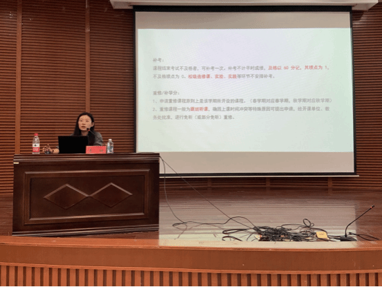 袁媛作学籍管理教育讲座。她主要围绕真人赌博游戏_澳门赌博网-app*官网学籍管理规定、毕业与学位授予条件、教务系统操作方法和人才培养方案等四个方面进行讲解,重点就课程学分、绩点和平均分的含义与关系、缺课与缓考、学业预警和考试违规处理等制度规定进行强调。她希望大家能够合理规划时间,保持学习热情,顺利成长成才。