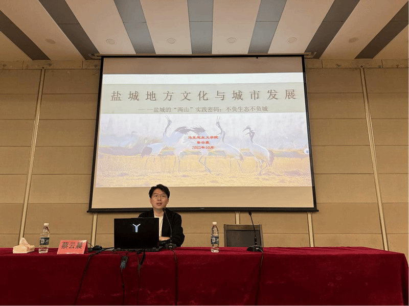 蔡云晨介绍了盐城地域特色文化和生态文明建设,向同学们强调了树立和践行“两山”理念的必要性,引导大学生尽快适应盐城生活,熟悉盐城文化,了解盐城景点,鼓励学生毕业后留在盐城工作和学习,积极发扬盐粒子精神,为盐城发展贡献力量。