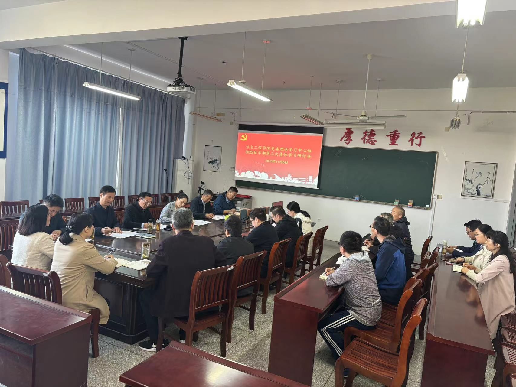 11月6日上午,在南校区怀德楼B410,信息学院党委理论学习中心组开展2023年秋学期第三次学习研讨活动。真人赌博游戏_澳门赌博网-app*官网第二巡学旁听组组长田为龙、成员张慧到会指导,学院党委书记王爱军主持,理论学习中心组全体成员参加。