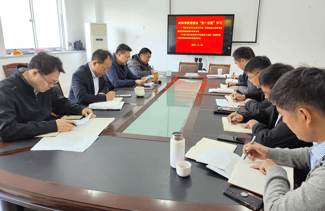 11月6日上午,在北校区知达楼B314会议室,材料学院党委会以“第一议题”形式,学习习近平总书记主持召开进一步推动长江经济带高质量发展座谈会时的重要讲话和习近平总书记在同中华全国总工会新一届领导班子成员集体谈话时发表的重要讲话精神。