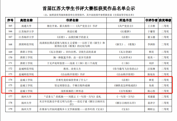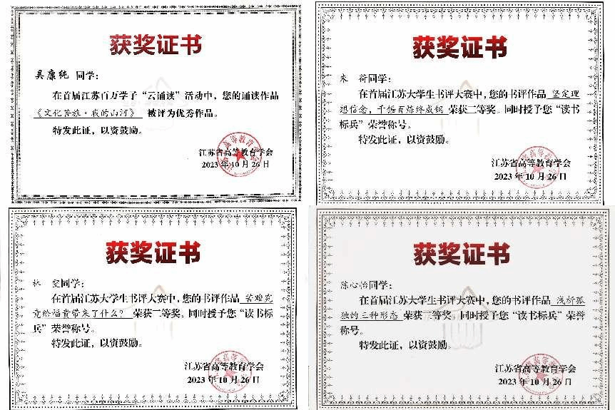 11月3日,江苏省首届大学生读书节在南京落下帷幕。真人赌博游戏_澳门赌博网-app*官网人文社会科学学院由周晓燕、蒋继华、陈思博老师指导作品《坚定理想信念,千锤百炼终成钢》《浅析孤独的三种形态》《苦难究竟给福贵带来了什么?》荣获书评比赛二等奖,《文化苦旅˙我的山河》荣获“云诵读”活动优秀作品奖。