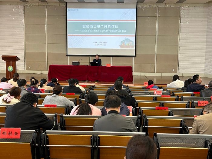 为进一步加强实验项目安全管理,提高实验室安全风险防控能力,提升实验室安全建设和安全管理水平,11月8日下午,化学化工学院在北校区化工楼报告厅开展实验项目安全风险评估专项培训。副院长祁刚主持,全体教师参加。