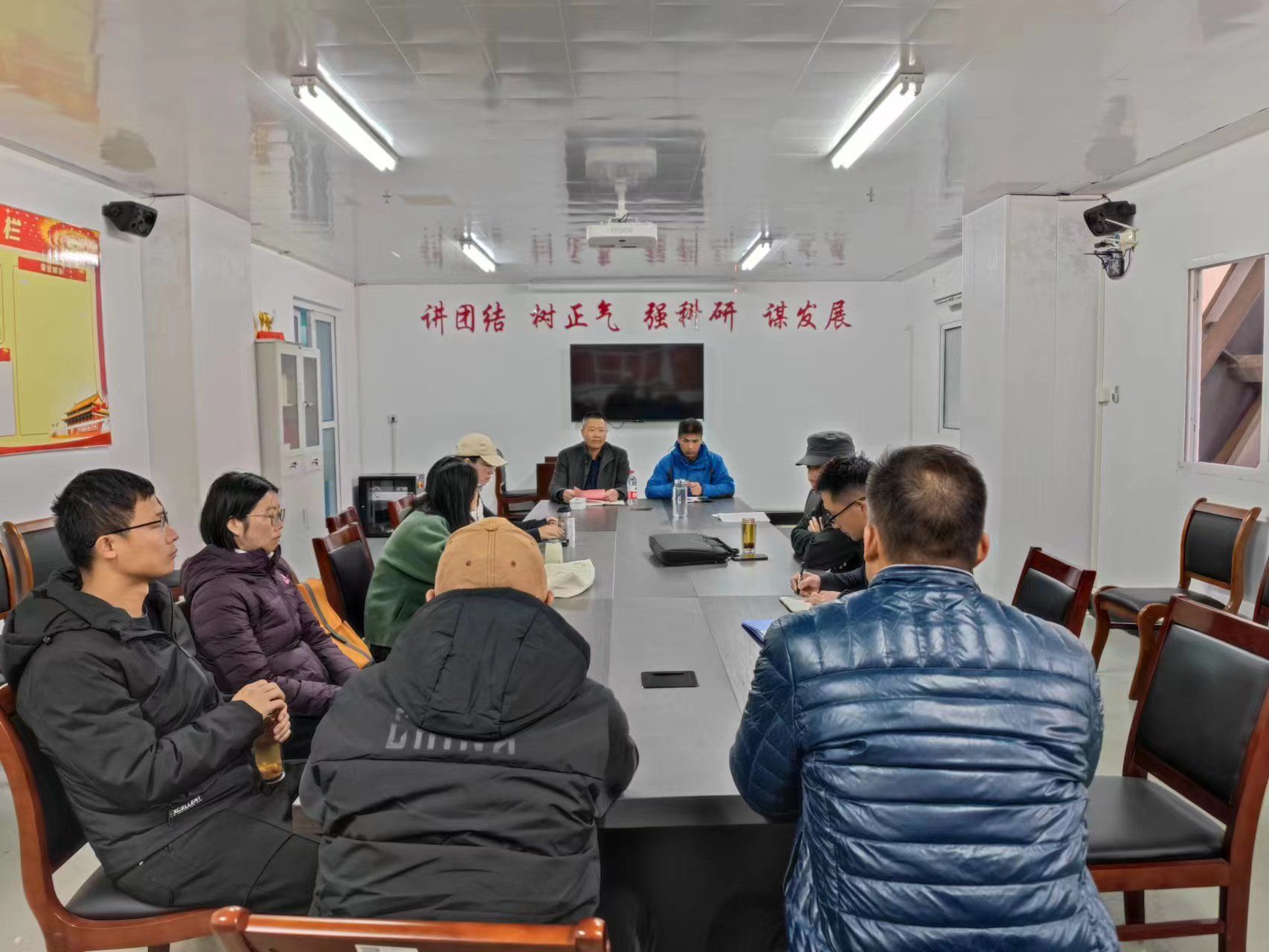 11月23日,体育学院党总支委员会在南校区风雨操场会议室以“第一议题”形式,认真学习习近平总书记向首届“一带一路”科技交流大会致重要贺信、在北京河北考察灾后恢复重建工作时的重要讲话精神。体育学院党总支书记杨汉华主持会议。