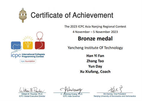 第48届ICPC国际大学生程序设计竞赛亚洲区域赛(南京)获奖证书