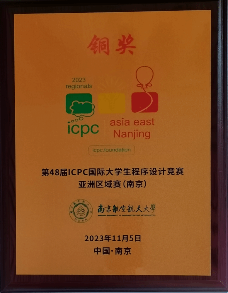 第48届ICPC国际大学生程序设计竞赛亚洲区域赛(南京)铜牌