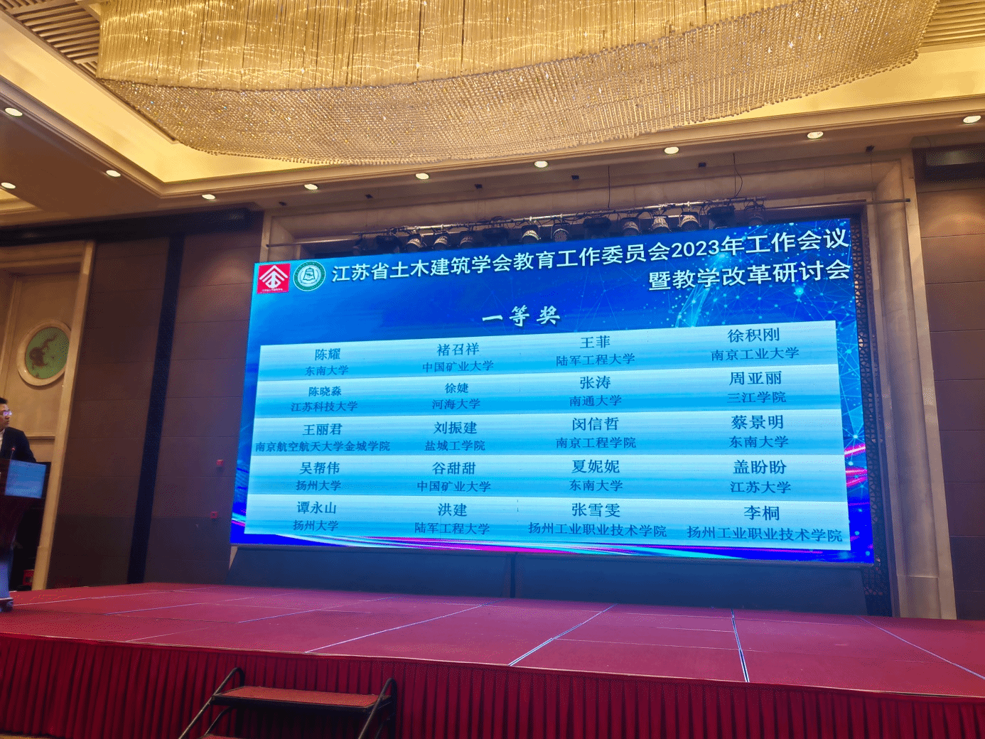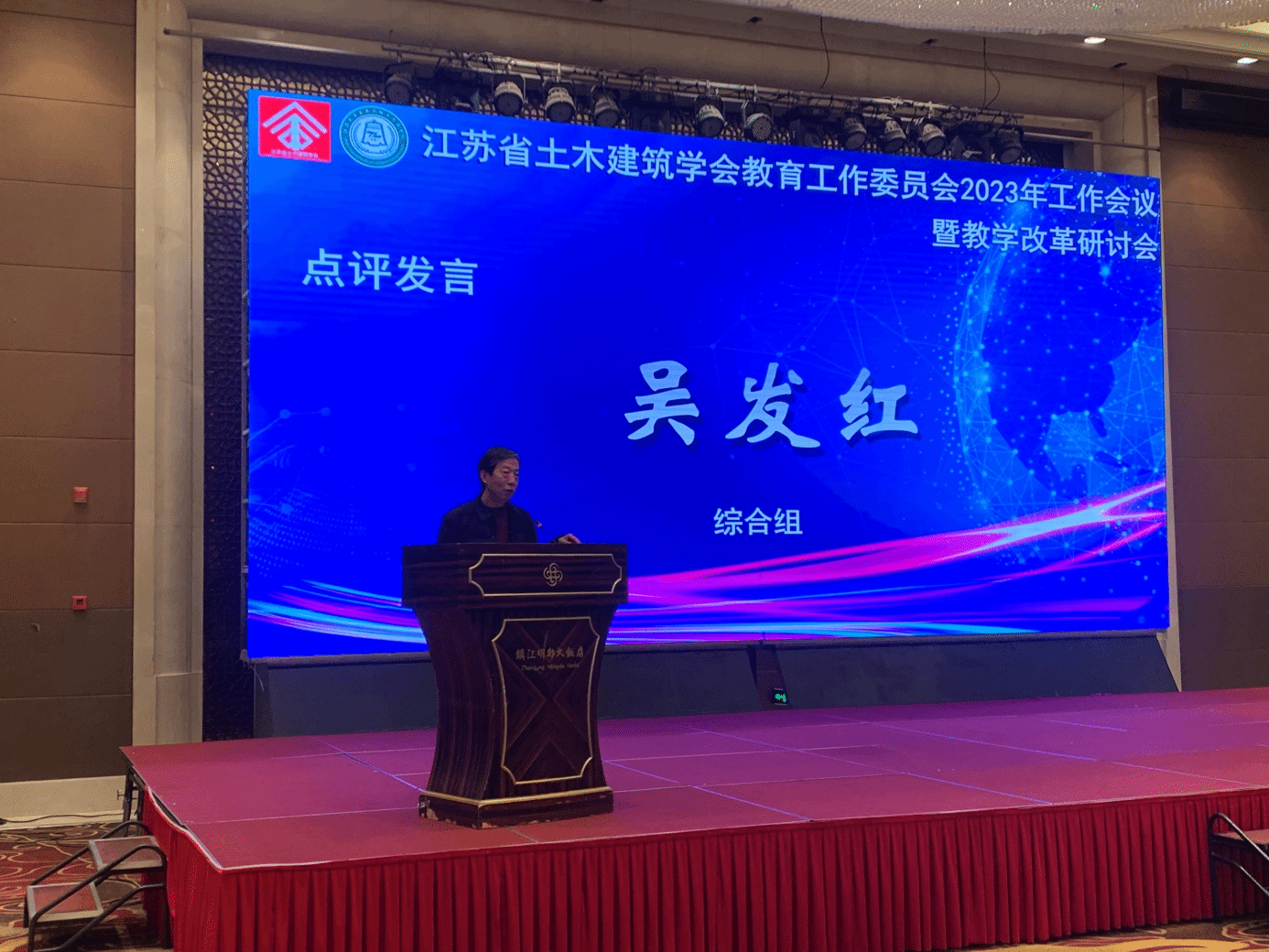 会议期间还举办了第十二届江苏省高校土木工程专业、智能建造专业青年教师讲课竞赛,土木学院青年教师刘振建获一等奖,充分展现了土木学院青年教师扎实的教学能力和风采,吴发红代表竞赛评审专家组进行了竞赛点评。