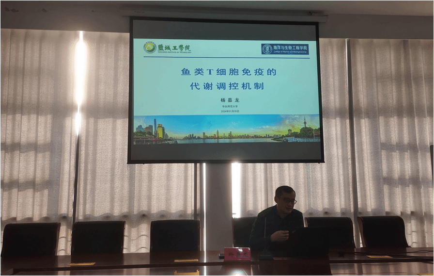 1月5日,华东师范大学博士生导师、国家优秀青年科学基金获得者杨嘉龙教授应邀来校作题为《鱼类T细胞免疫的代谢调控机制》的学术报告。报告会由海生学院副院长齐志涛主持,学院40余名师生聆听报告。