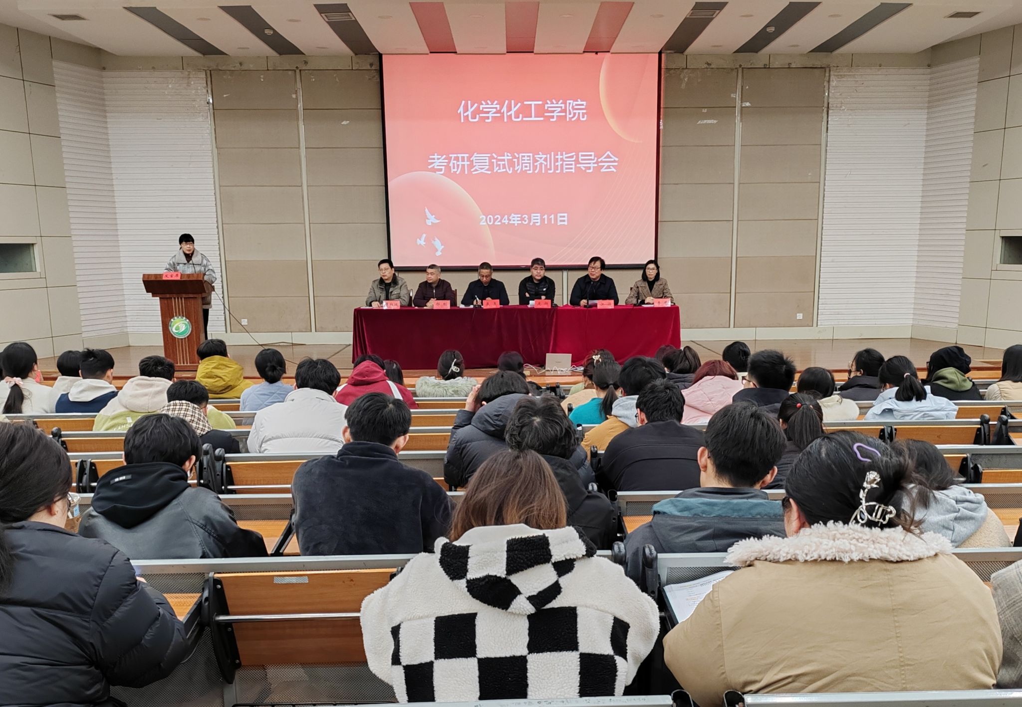为帮助考研学生掌握录取政策,提前做好复试与调剂相关准备工作,提高考研复试成功率,3月11日晚,化学化工学院在北校区化工楼报告厅召开2024届考研复试调剂指导会。学院领导班子全体成员、考研指导教师、毕业班辅导员和考研学生100多人参加。学工办主任李慧主持。