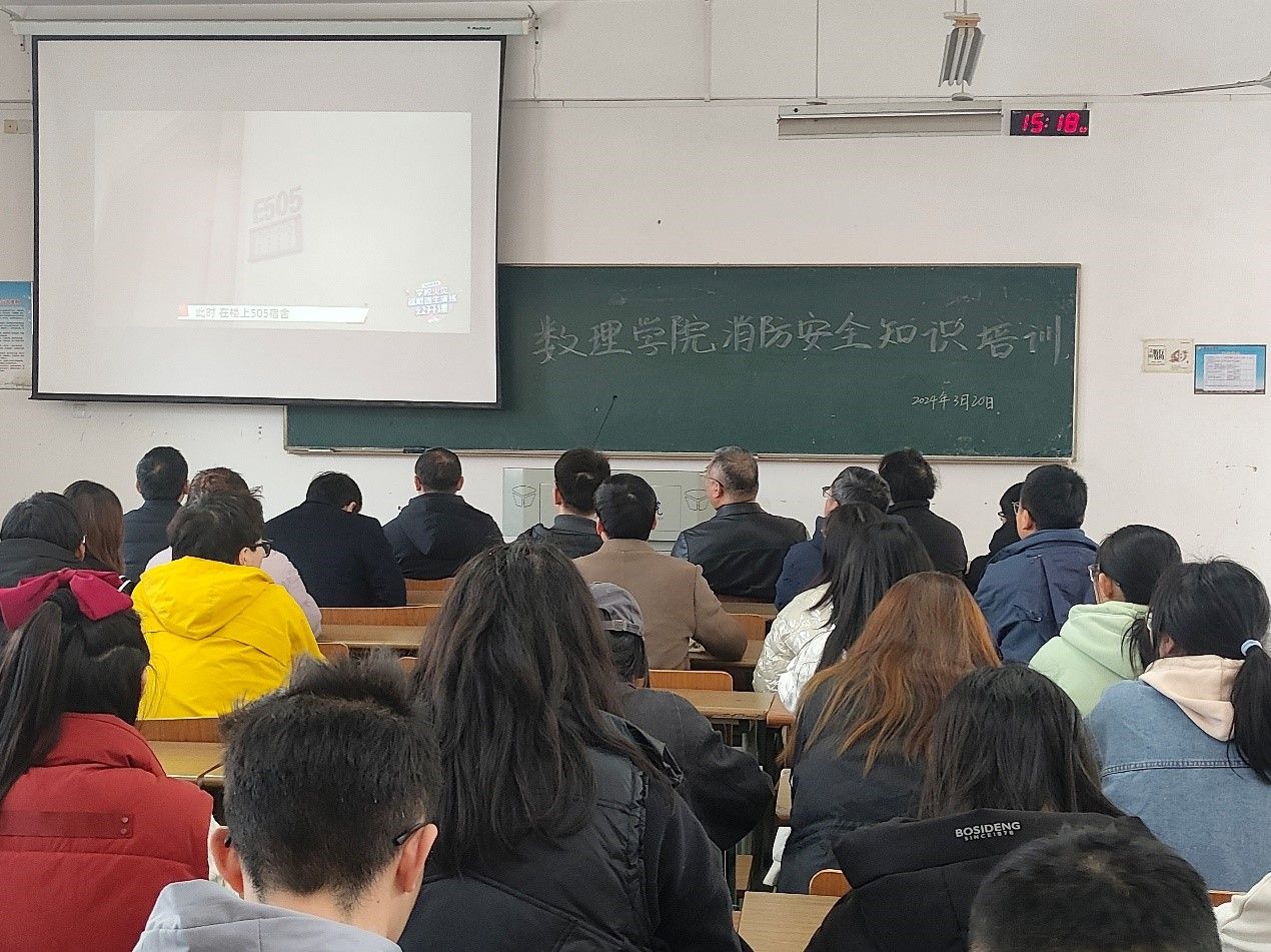 为切实做好校园消防安全宣传教育工作,提高师生消防安全意识,牢固掌握应急逃生、自救等安全技能,3月20日下午,数理学院组织开展了消防安全教育培训暨应急消防演练活动。数理学院党总支书记魏伟华、副院长徐宁、教师代表及学生代表等100余人参加。