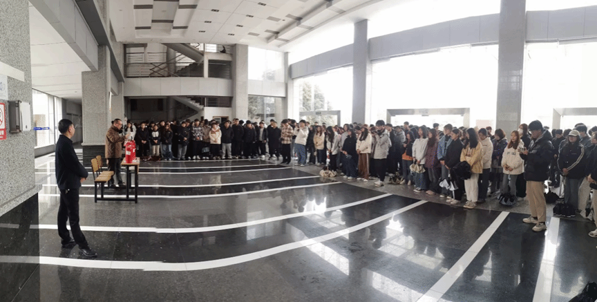 为增强同学们的消防安全意识,掌握基本的消防安全知识,提高应对火灾等突发事件的自救能力。3月23日下午,海生学院在知达楼一楼大厅开展“筑牢安全防线,共守校园平安”消防演练活动。本次活动由学院党总支书记高留才主持,院长彭斌、副院长齐志涛、副书记毕蕾、实验室中心主任王笃军,学院专兼职辅导员和实验中心专业教师,学生会和团委学生干部及大一、大二学生等500多人参加。