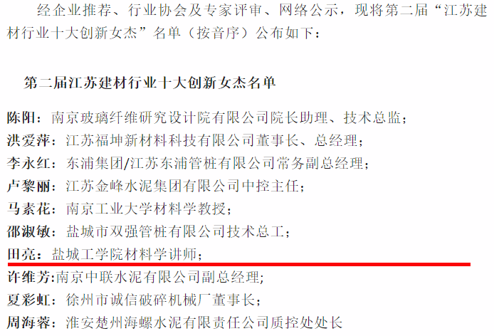 这一荣誉是对材料学院郭伟、田亮、戴海璐3位女教师在江苏省建材行业教学和科研方面卓越表现的肯定。