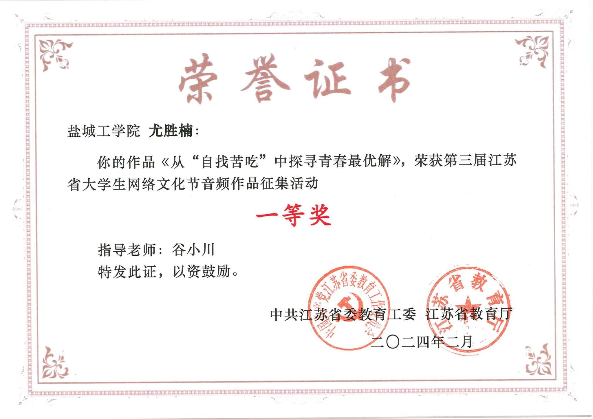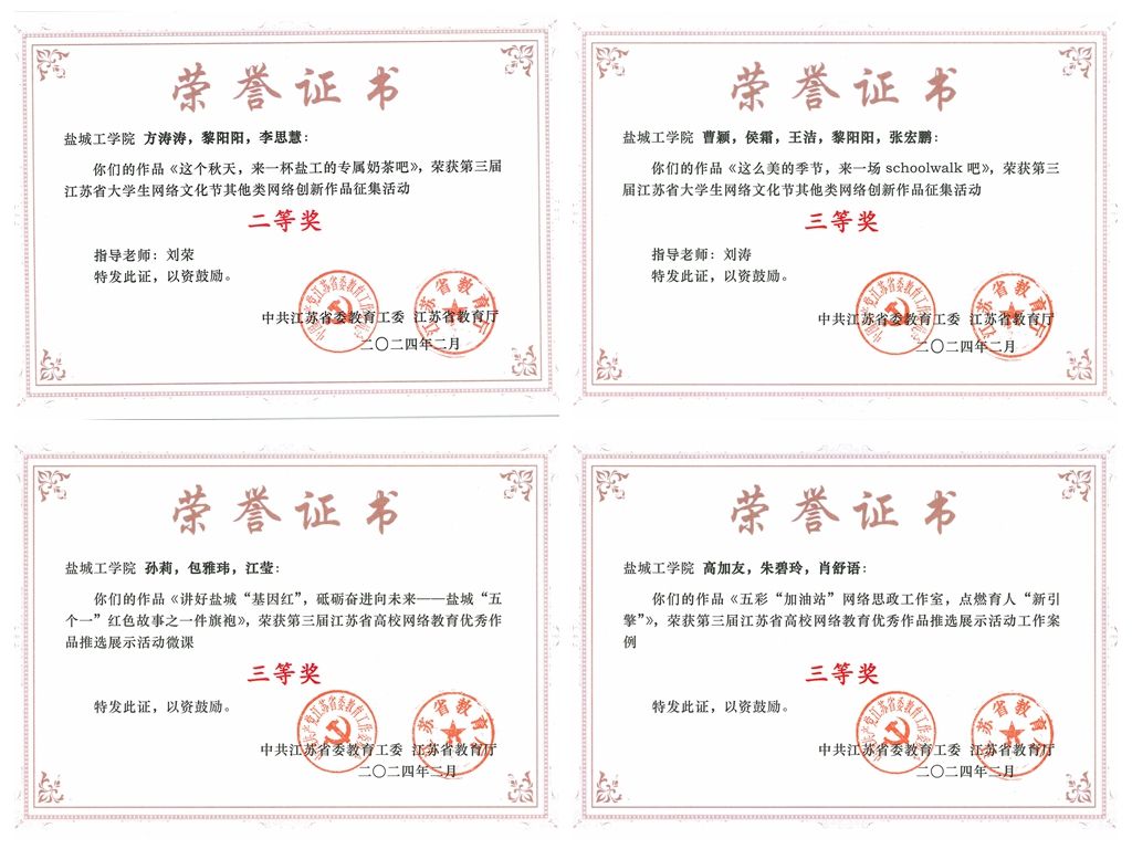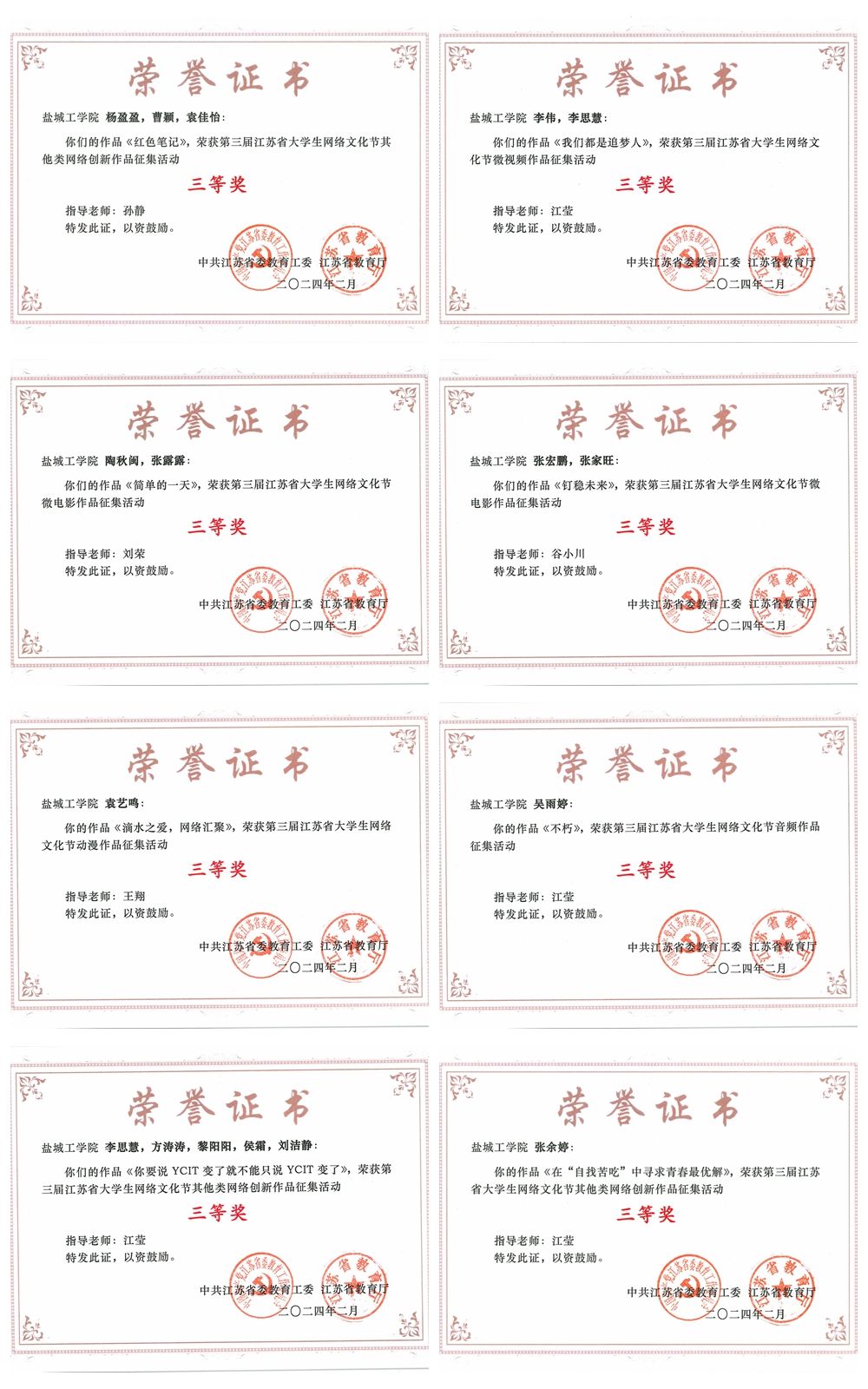 近日,由中共江苏省委教育工作委员会、江苏省教育厅主办,江苏省高校网络思想政治工作中心承办的第三届江苏省大学生网络文化节和高校网络教育优秀作品推选展示活动落下帷幕。经过高校申报、材料初审、专家评审、内容审核等环节,真人赌博游戏_澳门赌博网-app*官网师生共获得一等奖1项,二等奖1项,三等奖11项。其中,2件获奖作品被推荐参加第七届全国大学生网络文化节。