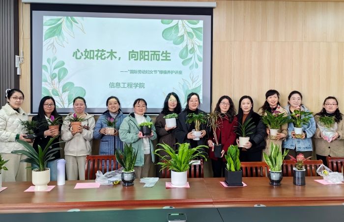 草树知春不久归,百般红紫斗芳菲。为庆祝“三八”国际劳动妇女节,进一步丰富女教职工的精神文化生活、陶冶情操,3月27日下午,信息工程学院分工会组织举办“心如花木,向阳而生”绿植养护讲座。