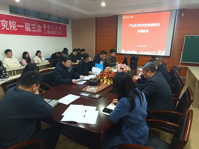 4月3日下午,在北校区知达楼AE209会议室,产业技术研究院组织开展师德师风专题教育。党总支书记、院长严金龙主持,研究院全体教职工参加。