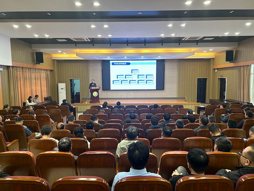 为规范学院科研经费管理工作,化解潜在风险,营造风清气正、廉洁科研的浓厚氛围,4月17日下午,在南校区机械工程馆报告厅,机械优集学院邀请科技处副处长赵华作“科技合同规范及科研经费使用规范”专题培训。培训会由机械优集学院院长周临震主持,学院全体教职工参加培训。