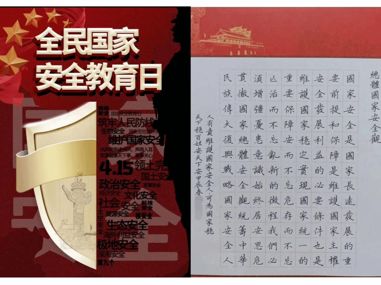 4月10日至14日,学院团委组织开展全民国家安全教育日主题作品征集活动,同学们用手抄报、平面海报设计、书法等形式,展现新时代国家安全事业重大成就。学院通过微信公众号发布总体国家安全观相关知识,介绍国家安全教育的重要性、国家安全的基本内容、国家安全面临的形势与挑战等内容,并对征集的学生优秀作品进行线上展示。