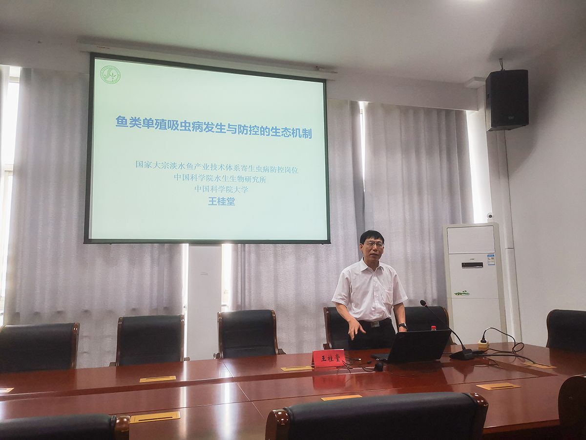 王桂堂研究员以“鱼类单殖吸虫病发生与防控的生态学机制”为题,系统地从实际生产角度介绍了单殖吸虫的分类、流行特点及危害;从科学研究角度介绍了单殖吸虫的种群与群落生态、单殖吸虫的发育与传播;实现科学研究与实际生产有机结合,为鱼类单殖吸虫病的检测和防控提供了新策略。