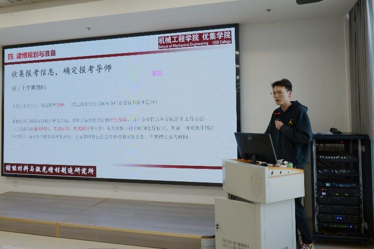为弘扬优良学风,树立先进典型,发挥榜样作用,营造崇尚科学、开拓创新、勇攀高峰的良好氛围,5月10日上午,机械优集学院在盐龙湖先进技术研究院组织召开优秀研究生经验分享会,邀请储能材料与激光增材制造研究所缪新宇同学、国家奖学金获得者刘梦冉同学、黄海明珠奖学金获得者刘鑫同学进行分享。交流活动由机械优集学院研究生秘书杭桂华主持,机械优集学院全体研一同学参加了本次交流活动。