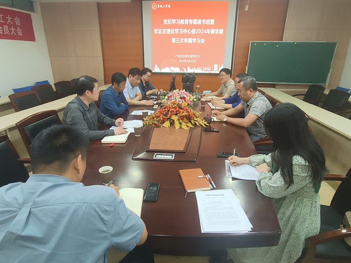 5月23日下午,在北校区知达楼AE209会议室,产业技术研究院举办党纪学习教育专题读书班暨党总支理论学习中心组2024年春学期第三次专题学习会。党总支书记、院长严金龙主持会议,研究院党总支理论学习中心组成员参加。