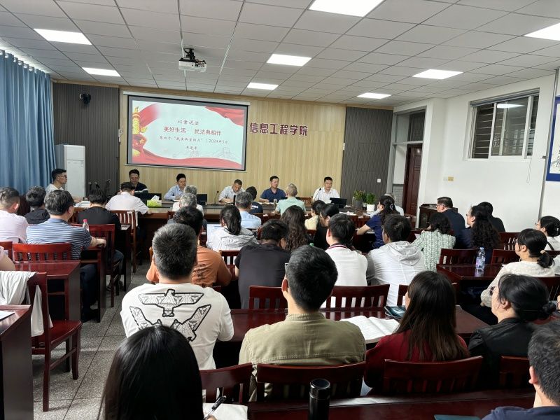 为深入开展“民法典宣传月”活动,增强师生法治观念,提升师生法律素养,5月29日,信息学院组织师生开展民法典学习宣传系列活动,学院党委书记王爱军带领教职工集中学习民法典的主要内容,学院辅导员老师召开主题班会、组织学生集中观看视频,学院全体师生参加活动。