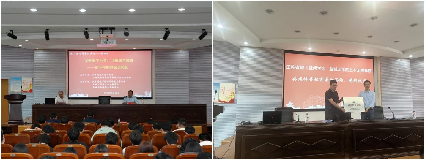 5月30日,全国科技工作者日到来之际,江苏省地下空间学会组织开展的“探索地下世界,共筑绿色城市——地下空间科普进校园”活动在盐城举行。江苏省地下空间学会常务副理事长黄俊、秘书长李奥、土木工程学院副院长李富荣等参加活动。
