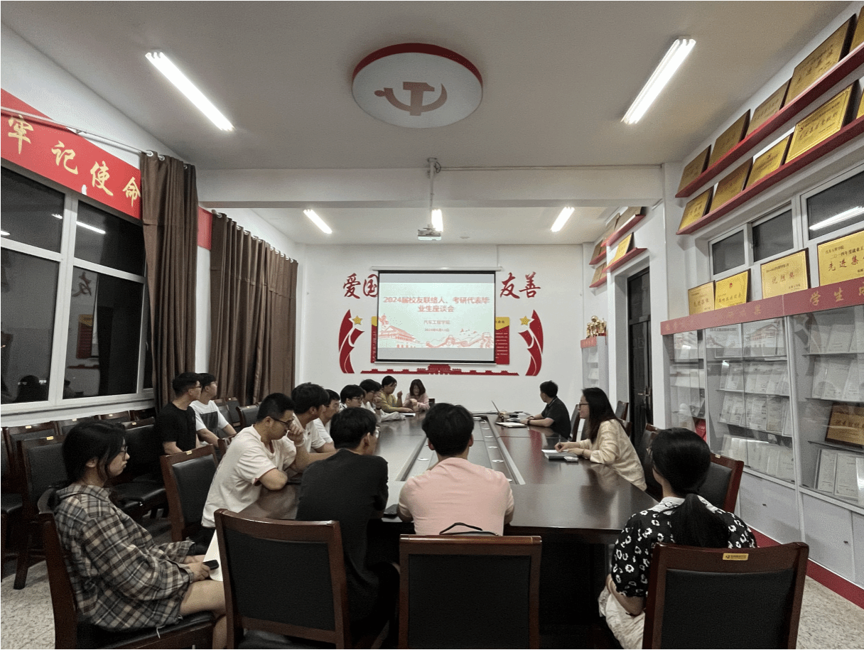 6月11日,汽车工程学院在机械馆323会议室举行了2024届毕业生代表座谈会。学院党总支副书记姜华、院长助理郑竹安、学工办主任吴慰春、毕业生辅导员孙雅以及校友联络员、外省学子、成功考取硕士研究生等40余名学生代表参加。