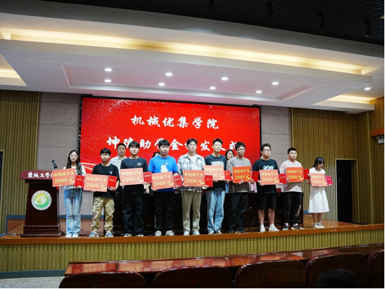 周临震代表学院鼓励受资助学生要立鸿鹄之志,做奋斗者,让奋斗成为青春最亮丽的底色;要钻研机械专业知识,练就数字化应用技能,全面提升综合素质,成长为有理想、有本领、有担当的新时代大学生;要知行合一,脚踏实地走好人生每一步。