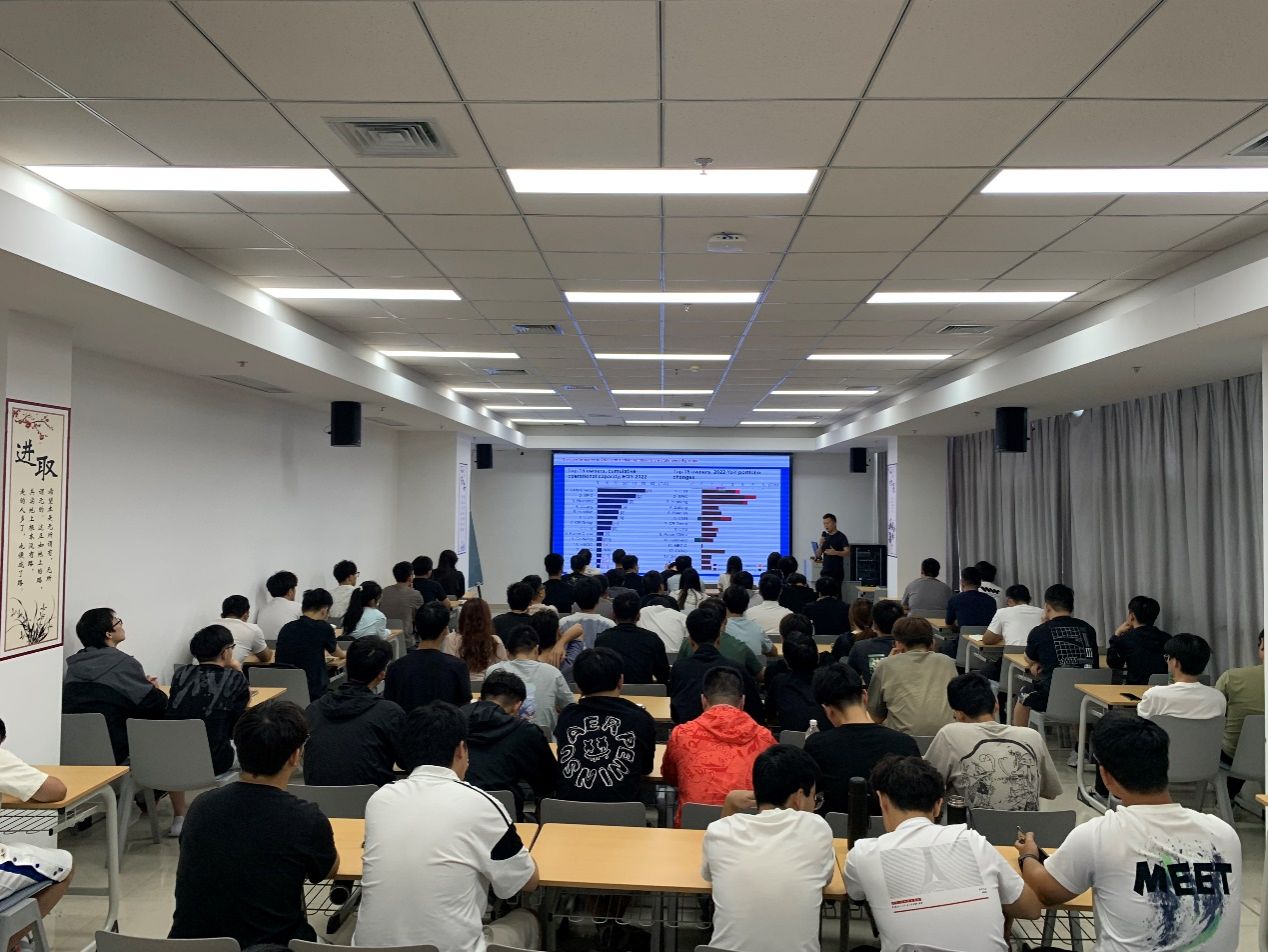 8月8日下午,受机械工程学院、优集学院邀请,德国DKF轴承集团公司亚洲首席代表兼风电行业总监向勇博士为盐龙湖智能制造暑期真人赌博游戏_澳门赌博网-app*官网2024级研究生做风电行业报告《CHINA OFFSHORE WIND POWER OVERVIEW》。本次产业报告在盐龙湖先进技术研究院414室举办,机械工程学院、优集学院副院长卢倩主持,青年博士教师代表,以及机械学位点80名2024级研究生等参加。