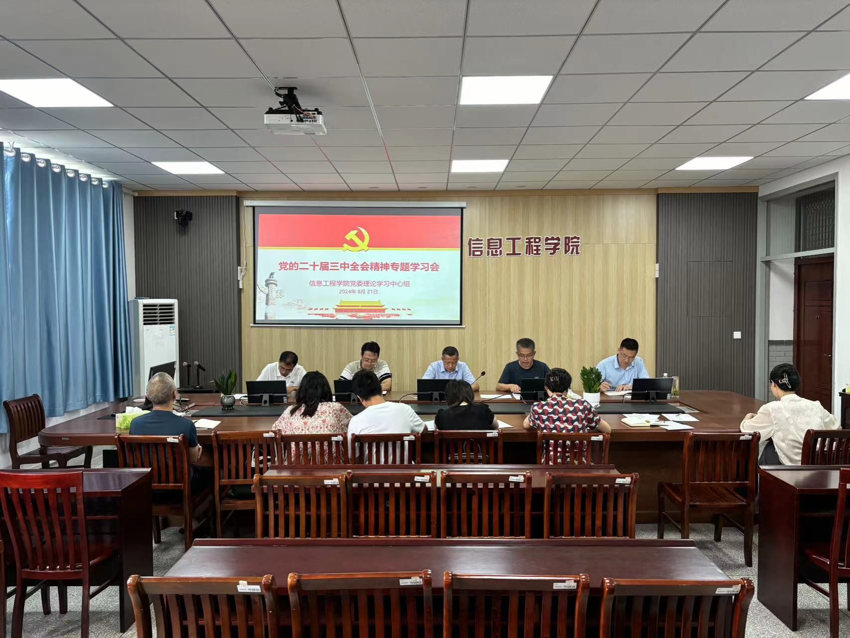 8月21日上午,信息学院党委理论学习中心组在怀德楼B410会议室召开党的二十届三中全会精神专题学习会。会议由学院党委书记杨军主持,理论学习中心组全体成员参加。