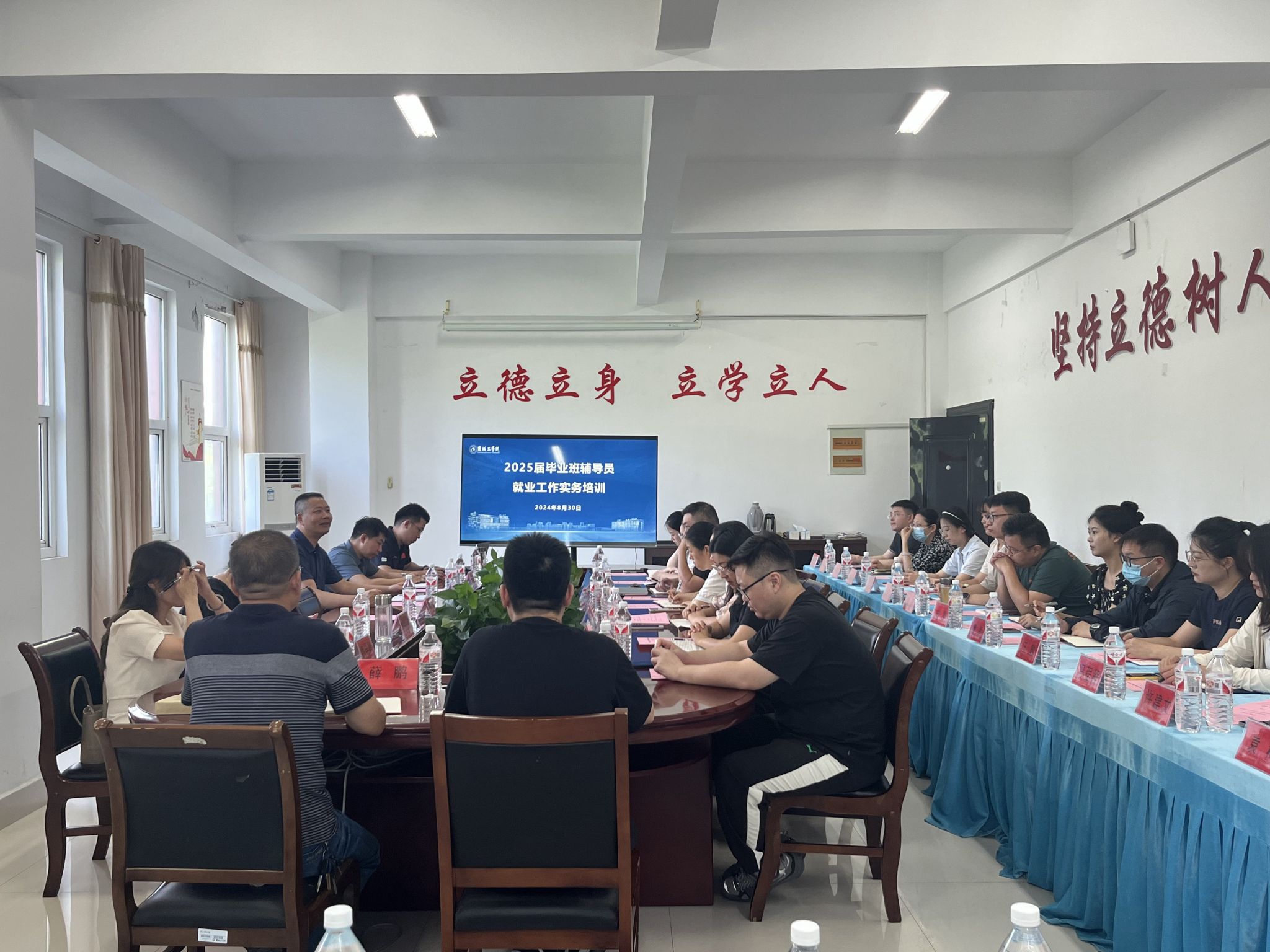 为深入贯彻落实党中央、国务院和省委省政府真人赌博游戏_澳门赌博网-app*官网:高校毕业生就业工作重要决策部署,加强真人赌博游戏_澳门赌博网-app*官网就业创业指导服务工作人员队伍建设,进一步提高真人赌博游戏_澳门赌博网-app*官网2025届毕业班辅导员的就业指导与管理水平,保障就业工作的有序进行,8月30日上午,招生与就业创业指导处在希望大道校区学生处会议室召开毕业班辅导员就业工作实务培训会。招生与就业创业指导处处长杨汉华、各二级学院2025届毕业班辅导员及就业指导中心相关人员等40余人参加会议。招生与就业创业指导处副处长阳韬主持会议。
