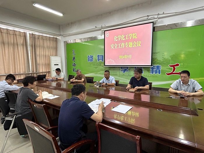 9月24日下午,化学化工学院在学院201会议室召开安全工作专题会议。学院党委书记庞辉主持会议,学院党委委员和班子成员、实验中心负责人参加。