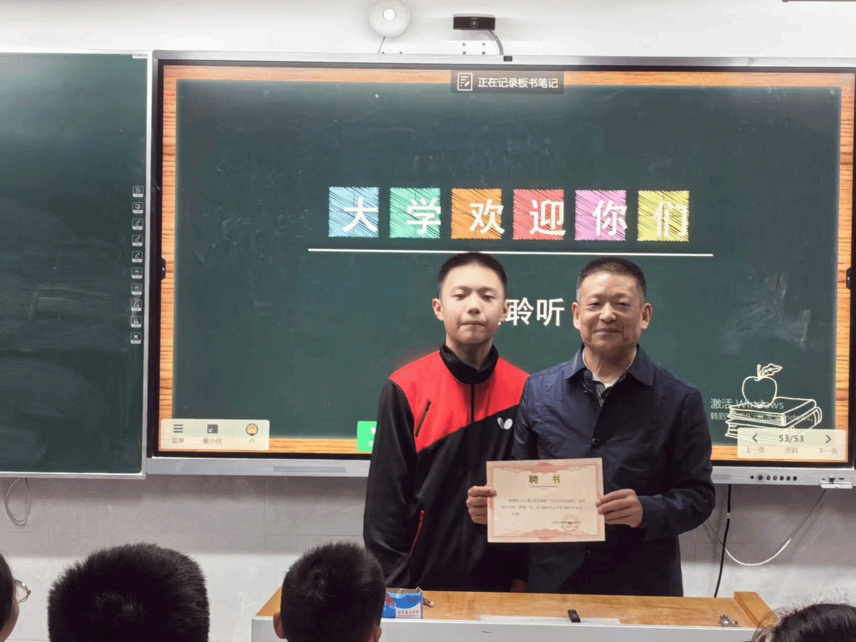讲座结束后,鹿鸣路初中一年级卢乐俊主任代表真人赌博游戏_澳门赌博网-app*官网向左元斌教授颁发“百行百业进校园”校外辅导老师聘书。