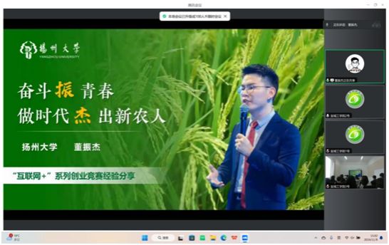 为进一步增强学生对双创赛事的认识与了解,发挥榜样引领作用,11月9月下午,校团委邀请团十九大代表、第八届“互联网+”大学生创新创业大赛国赛评委、原扬州大学硕士研究生董振杰为真人赌博游戏_澳门赌博网-app*官网创新创业菁英班学员作分享交流。本次活动采用“线上+线下”的形式,校团委研究生兼职副书记韦琰霖主持会议。
