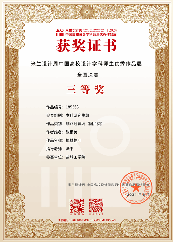 近日,教育部中国高等教育学会学科竞赛排行榜赛项一一落下帷幕,纺织服装学院师生以其独树一帜的创新思维、深厚坚实的艺术造诣,以及对作品不懈追求卓越的精神,在众多激烈的比赛中脱颖而出,斩获了令人瞩目的好成绩。其中,陶如嫣同学和张杨美同学在陆平老师的指导下,分别获得“米兰设计周——中国高校设计学科师生优秀作品展”(大学生竞赛榜单排名第28名)省赛一等奖、二等奖,国赛二等奖、三等奖的好成绩;陶如嫣同学在陆平老师的指导下,荣获“未来设计师?全国高校数字艺术设计大赛(NCDA)”(大学生竞赛榜单排名第34名)省级一等奖、国家级二等奖的好成绩;赵艳彤同学和时涛同学通力合作,在陈嘉毅老师和王春霞老师的共同指导下,荣获“全国大学生数字媒体科技作品及创意竞赛”(大学生竞赛榜单排名第71名)省赛一等奖、国赛三等级的好成绩。柏昕、程冰莹、李慧、孟灵灵等老师分别指导学生获得多项省赛二等奖和三等奖的好成绩。