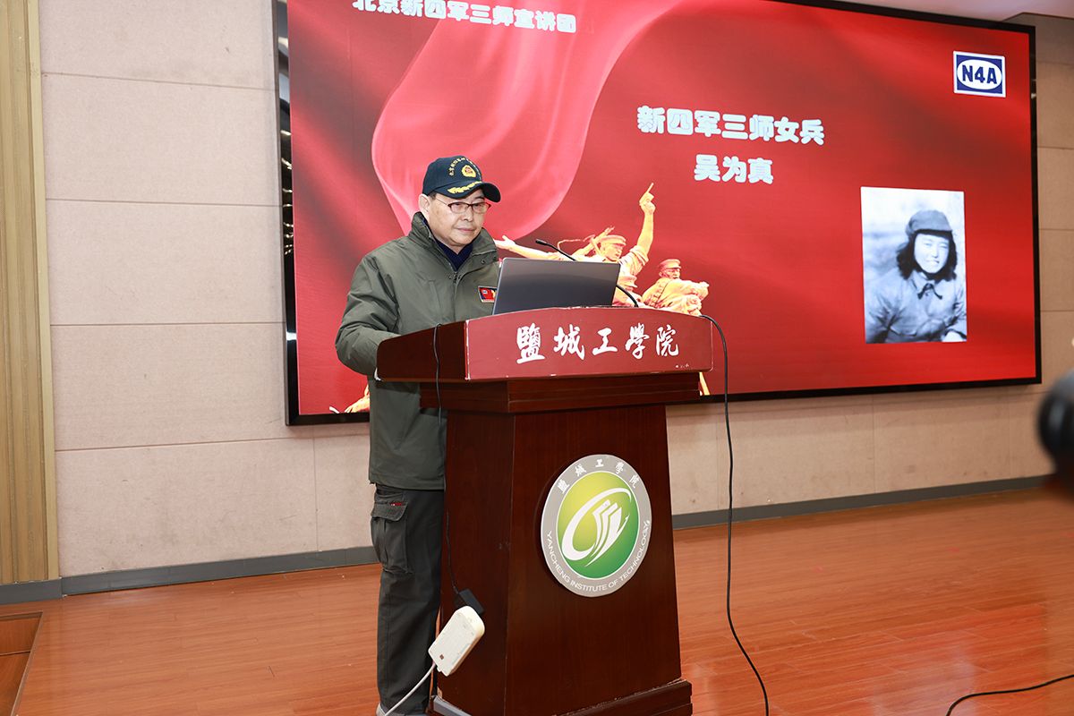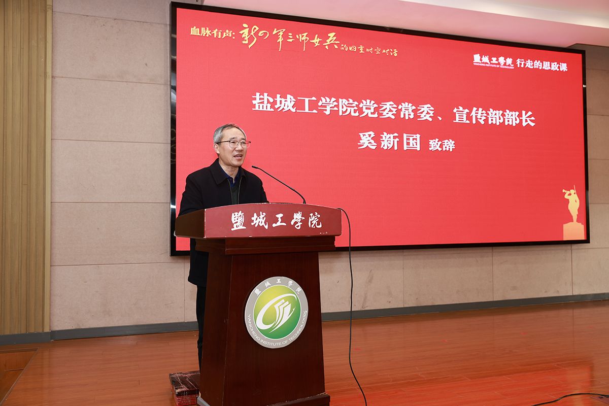 奚新国向出席活动的各位领导、嘉宾以及新四军三师女兵的后代代表们表达了热烈的欢迎,并对参与宣讲的四位嘉宾表示衷心的感谢。他表示,84年前,新四军三师女兵们以无畏的英勇和坚韧的精神,在烽火岁月里完美诠释了“巾帼不让须眉”的豪迈气概。84年后的今天,这份伟大的精神依然熠熠生辉,激励着我们奋勇向前。他希望全体盐工学子以女兵精神为指引,为国家和民族贡献力量。