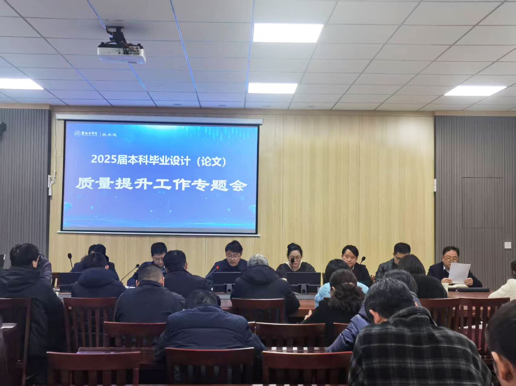 3月20日下午,2025届本科毕业设计(论文)质量提升工作专题会在怀德楼B410会议室召开。教务处副处长周天池、评估处副处长熊璐璐以及各学院分管教学副院长、教务科长等相关工作人员出席会议。
