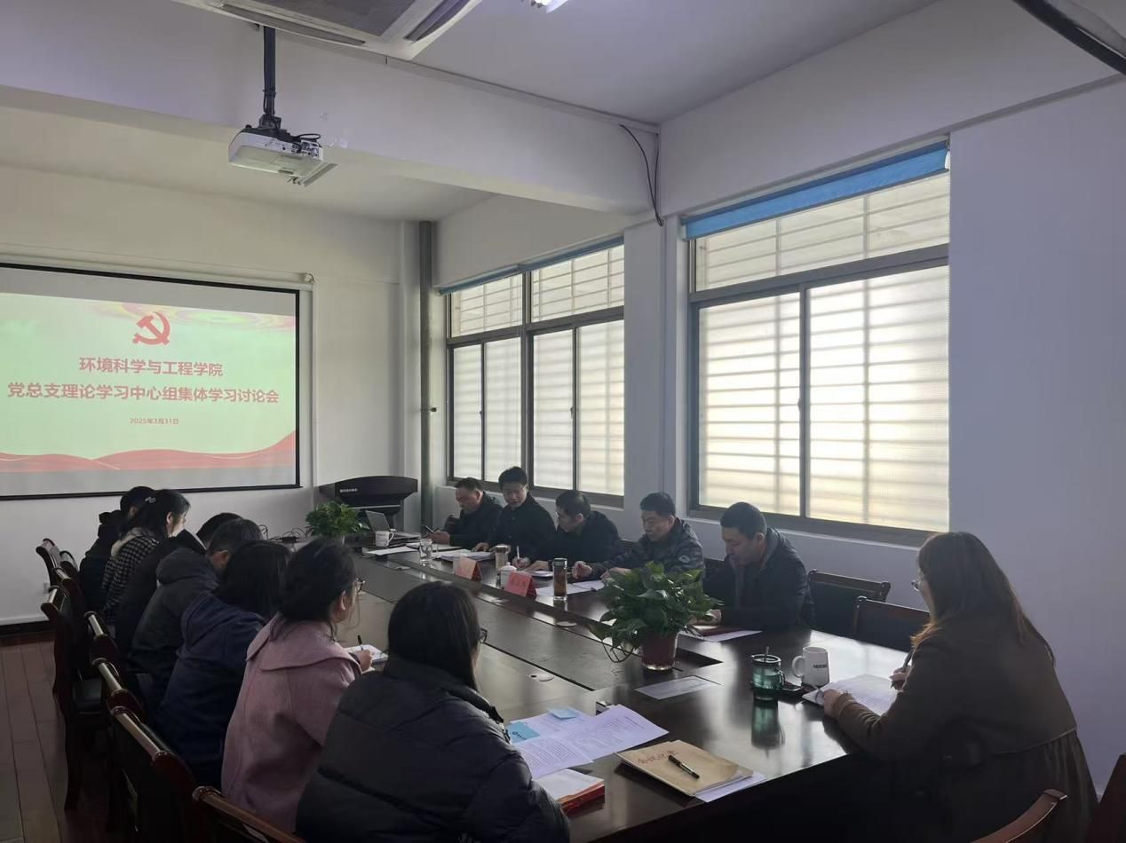 3月31日上午,环境学院党总支理论学习中心组在建军东路校区学院会议室召开集体学习研讨会。真人赌博游戏_澳门赌博网-app*官网第一巡学旁听组组长谢毅敏、副组长秦卫兵现场指导。会议由学院党总支书记孟鑫主持,环境学院党总支理论学习中心组成员参加。