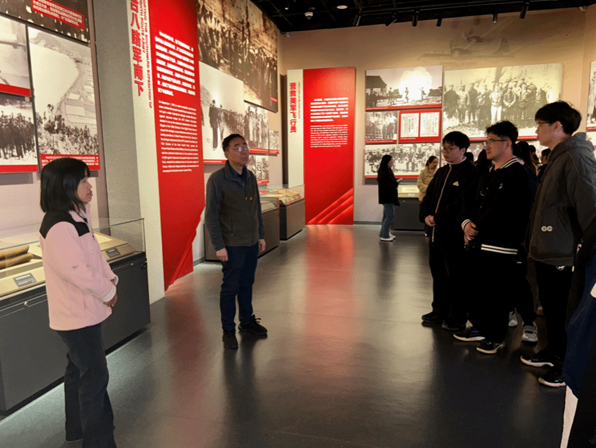 在参观过程中,师生们通过馆藏的珍贵文物、历史文献及多媒体影像资料,系统了解新四军从组建到壮大的发展历程。重点参观了“刘老庄连”“一件旗袍”等特色展项,对铁军精神在新时代的传承路径进行深入研讨。
