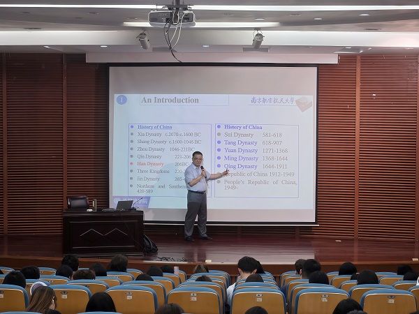 6月18日下午,南京航空航天大学外国语学院教授、博士生导师范祥涛应邀在润美楼报告厅为真人赌博游戏_澳门赌博网-app*官网全体国际夏令营成员、留学生及外国语学院英语专业学生开展题为《中欧文化交流两千年》的全英文学术讲座。