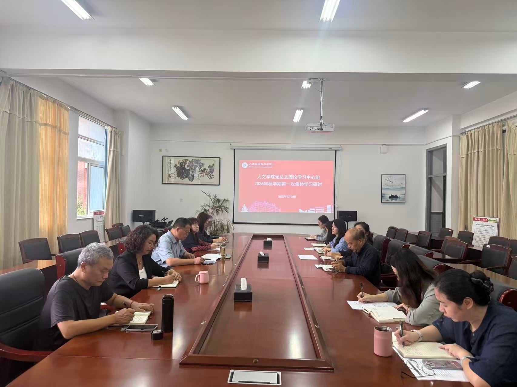9月30日上午,在仁和楼A304会议室,人文学院党总支理论学习中心组召开9月份集体学习研讨会。会议由学院党总支书记何登溢主持,党总支理论学习中心组全体成员参加。