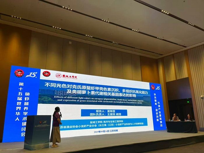 会上,真人赌博游戏_澳门赌博网-app*官网水产动物营养饲料研究所4名教师和2名研究生入选口头报告,分别从不同方面展示了本实验室的近期研究成果,刘飞教授作了题为《水蛭肠道异嗜糖气单胞菌促进水蛭生长研究》的报告;张武肖博士报告了《饲料不同维生素 E 水平对克氏原螯虾生长性能、肌肉品质和肠道微生物稳态的影响》;潘明珠博士探讨了《大口黑鲈 PINK1/Parkin介导的线粒体自噬促进杀鱼爱德华氏菌胞内增殖的机制研究》;夏斯蕾博士分享了《不同光色对克氏原螯虾甲壳色素沉积、多组织抗氧化能力及类胡萝卜素代谢相关基因表达的影响》。研究生艾卓卓同学报告了《饲料不同脂肪水平对克氏原螯虾幼虾生长、肌肉品质及肠道健康的影响》;研究生杜友海同学汇报了《温度与微塑料联合暴露对克氏原螯虾复合毒性效应研究》。这些报告内容翔实,吸引了现场众多学者。