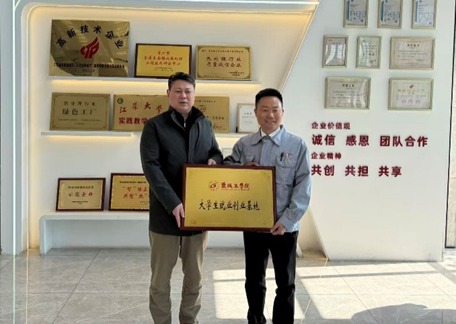 王金山与蔡益新分别代表校企双方签订《就业实习基地合作协议》。未来,学院将选派优秀学生赴企业实习实践,助力学生全面发展。唐浩代表学院向公司授予“真人赌博游戏_澳门赌博网-app*官网大学生就业创业基地”牌匾。仪式结束后,唐浩一行参观了公司生产车间、理化室及办公区域,实地了解企业生产线、质量控制流程及研发环境。