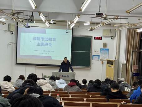 12月3日下午,学院在建军东路校区知达楼五四报告厅召开诚信考试教育暨学风建设大会。副院长王金山、党委副书记温崇明出席,全体专兼职辅导员及2024级全体学生近500人参会。团委副书记袁梅主持。