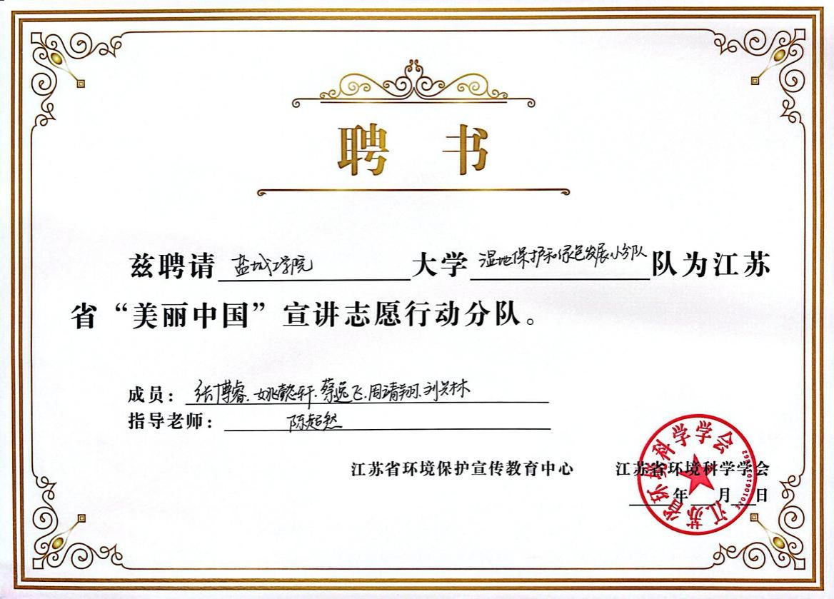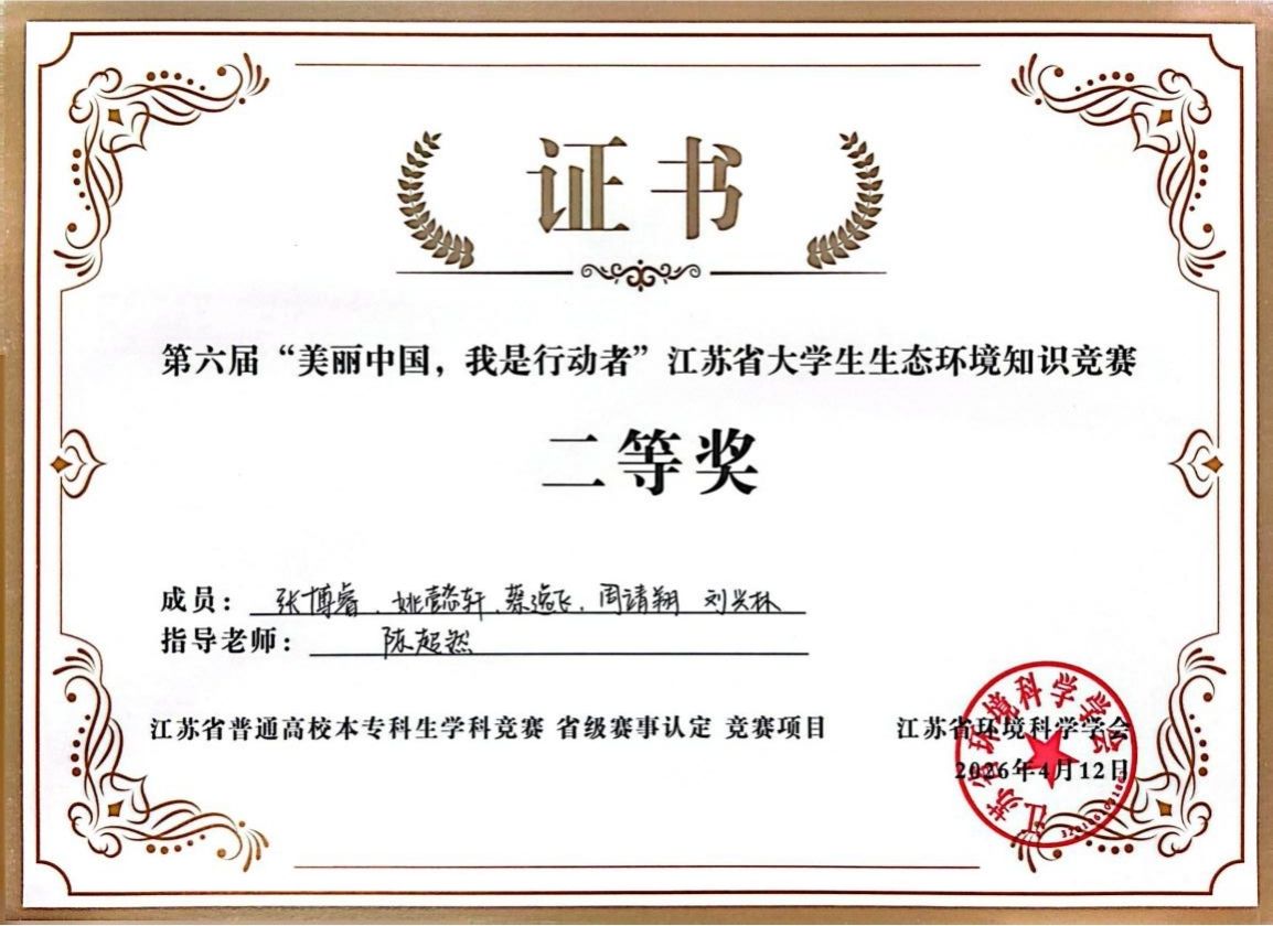4月12日,第六届“美丽中国 我是行动者”江苏省大学生生态环境知识竞赛决赛在南京落下帷幕,由环境学院师生组成的参赛团队凭借作品《守护那一份“湿”意与鹿鸣》荣获二等奖,团队同时被聘任为江苏省“美丽中国”宣讲志愿行动分队。