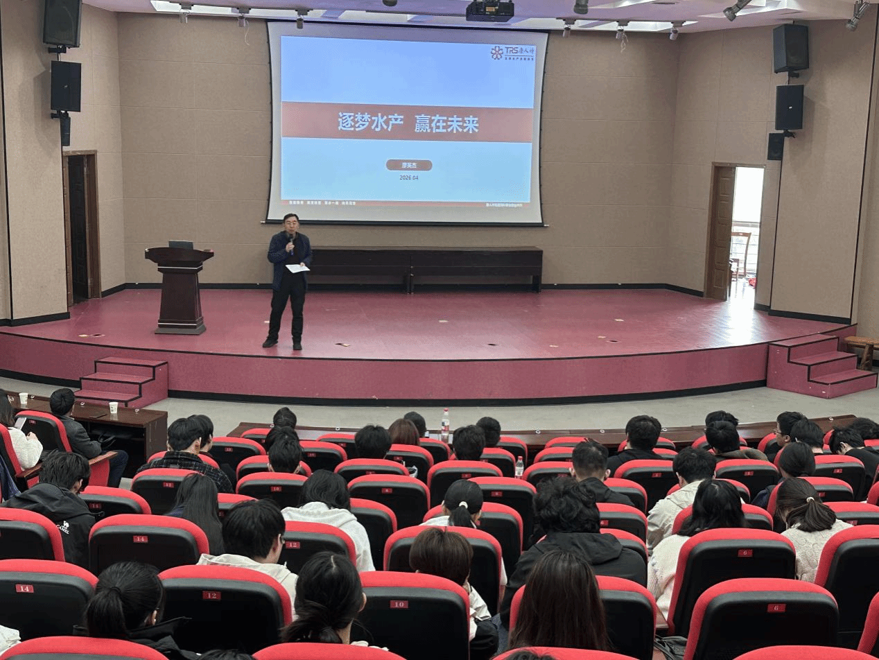 报告中,廖英杰深度剖析水产行业发展现状、就业前景与深造方向,为学院师生带来前沿行业洞察。他指出,国家正在推进中国式现代化,推动海洋经济高质量发展,需要大量海洋水产类专业人才,此类学科专业大有可为。而且全球水产行业呈现“稳中有增”的良好态势,全球水产量年消费已达近6000万吨。随着饮食结构从“吃饱”向“吃健康、吃好”转型,水产品在宴席及日常饮食中的占比持续提升,江苏地区更是形成“无海鲜不成席”的消费趋势。在产能分布上,亚太片区占据全球主导地位,中国、美国、巴西、印度四国市场占比达50%,成为行业核心增长极。廖英杰表示,当前水产饲料行业呈现两大发展趋势:行业加速规模化、集约化发展,龙头企业主导产业升级,小型工厂逐步被淘汰;海外市场潜力凸显,依托“一带一路”,国内水产企业积极出海布局。越南、印尼、厄瓜多尔等国家投资前景广阔,我国先进养殖技术与成熟模式,助力中资企业快速开拓海外市场。