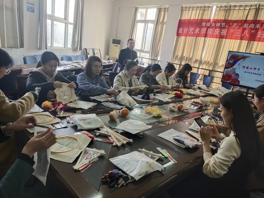 为庆祝“三八”国际劳动妇女节,丰富女教职工的业余文化生活,促进教职工身心健康发展,3月8日下午,在希望大道校区润美楼A201,设计艺术学院开展“情暖女神节‘艺’起向未来”女教职工戳戳绣活动。学院20余名女教职工欢聚在一起,亲自动手绣制了一幅幅精致美丽的作品,开心地度过了一个值得纪念的节日。学院党总支书记胡凌霞参加活动。