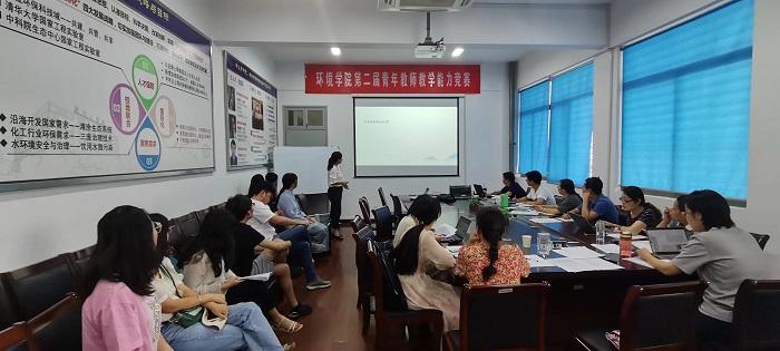 为进一步强化青年教师立德树人理念、提高课堂教学基本功、推动课程教学改革、提高人才培养质量,6月28日,环境学院在北校区教育超市三楼会议室举办了“第二届青年教师教学能力竞赛”。环境学院共38门专业课程PPT参加评比,8位青年教师参加教学能力竞赛。院长严金龙、副院长陈天明及骨干教师、优秀教师代表等共9位老师担任评委。
