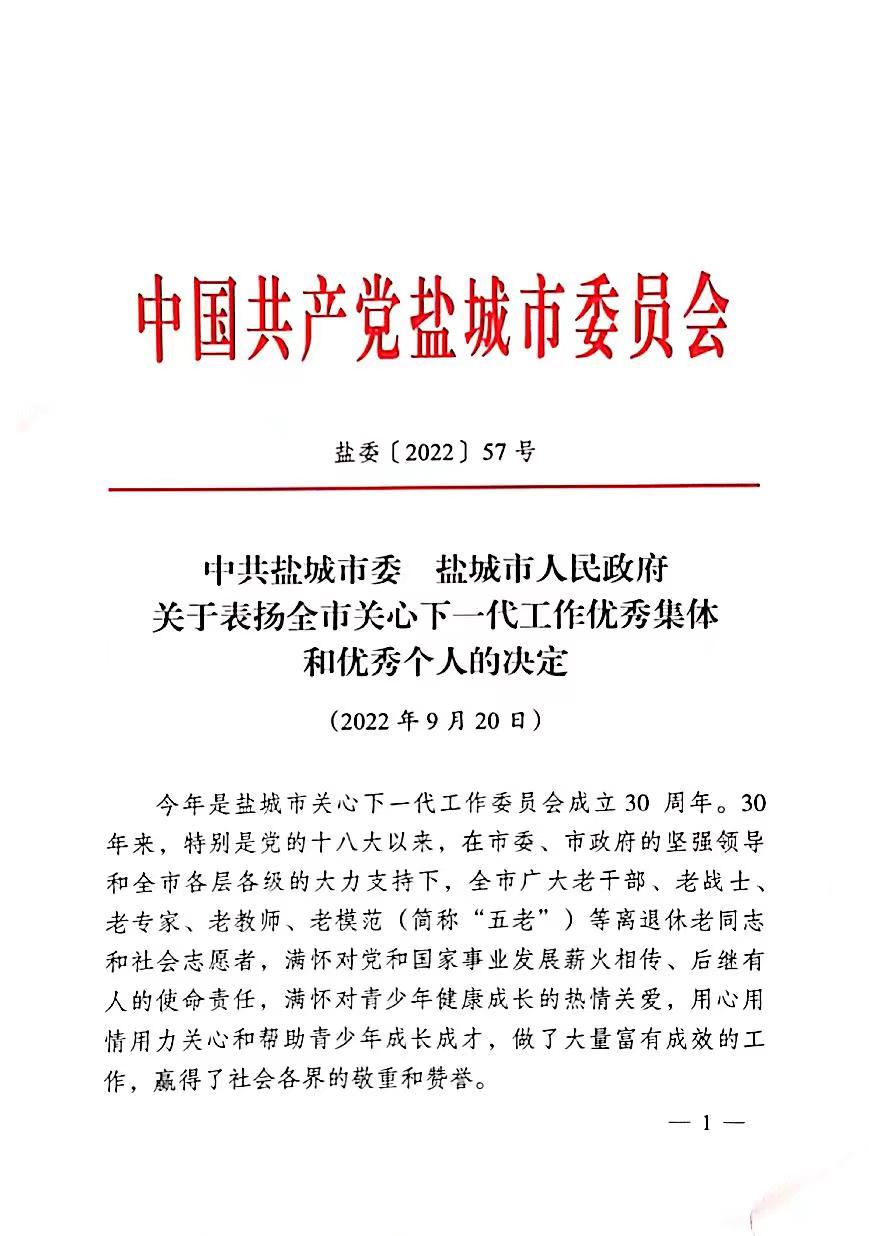 在9月22日召开的纪念盐城市关工委成立30周年纪念会上,真人赌博游戏_澳门赌博网-app*官网关工委荣获市“关心下一代工作优秀集体”荣誉称号,周瑞明同志荣获市“关心下一代工作优秀个人”荣誉称号。