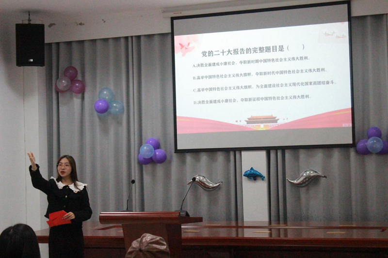 漫长的近代中国史,从参赛同学的朗诵声中,慢慢铺开,所有人都被带回到了那个艰难的岁月。朗诵小组一个一个登台,展现各自风采,诉说着对共产党、对祖国的祝福与热爱,大家听完朗诵后都心潮澎湃、感慨万千。其中外国语学院吴雨婷同学带来的《不朽》饱含情感,真情流露出对英雄的礼赞;海生学院邵颖同学朗诵的《新时代新青年》,激励新时代青年要建功立业、志存高远,在青春赛道奋力奔跑。活动穿插着趣味小游戏,在场的同学们积极回答党的二十大相关题目,了解实时政事,立足中国、展望世界。