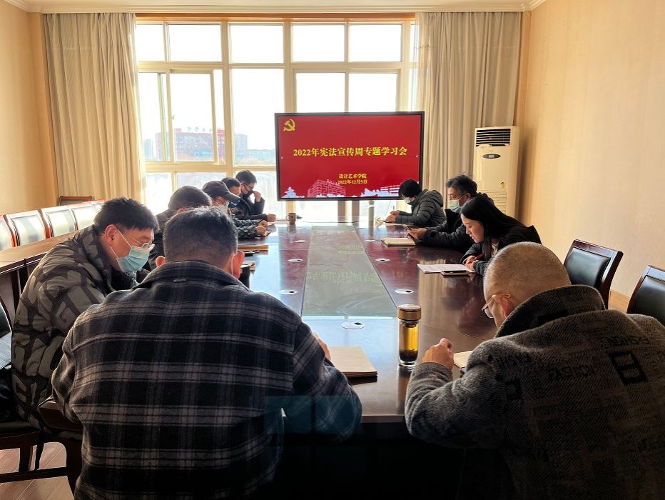 12月5日下午,学院党总支组织理论学习中心组成员、专业系主任、职能科室负责人开展宪法学习,学院宪法宣传员、团委副书记叶禎菲领学。她表示,党的十八大以来,我国社会主义法治建设发生历史性变革,取得历史性成就,党对全面依法治国的领导更加坚强有力,作为高校教师一定要认真学习宪法,尊崇宪法、维护宪法,做到学法、知法、守法。院长张军强调,全院上下要把学习遵守宪法与学习贯彻习近平新时代中国特色社会主义思想和党的二十大精神结合起来,融会贯通,加深理解,党员领导干部要切实发挥示范引领作用,熟知宪法文本,强化宪法意识,充分领会宪法精神,自觉维护宪法权威,带头厉行法治、依法办事,引领带动全院师生形成学习贯彻宪法的良好氛围。